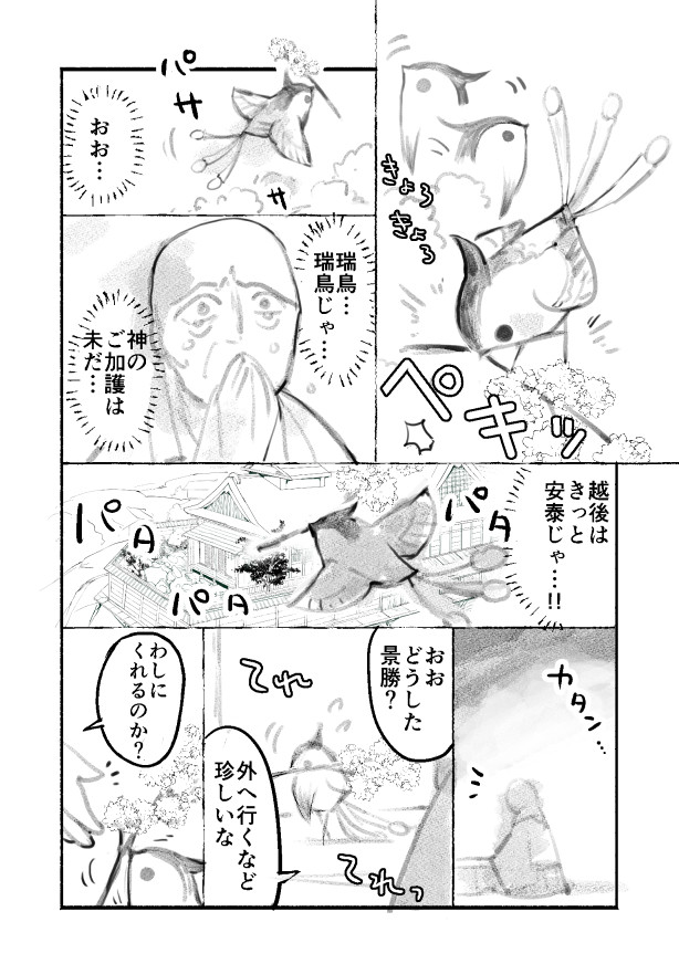 ◎ てけとう刑部語り 1 大谷刑部はどんな人?(祟る人ってなぜ?) 2 大谷刑部の一般的評価 3 大谷刑部の謎な出生 4 大谷刑部の名前 5 大谷刑部の宿病 6 大谷刑部の頭巾 7 メディアのなかの大谷刑部 ◎ 大谷刑部の周りの人たち 1 大谷刑部の家族 その一 2 大谷刑部の家族 その二 3 大谷刑部の家族 その三 祐玄坊クローズアップ 4 大谷刑部の家族 その四 竹林院クローズアップ ◎ 大谷刑部関係 二次創作 ○ イラスト (新↑ 古↓) 覚え書き集 人物色々 らくがき 刑部詰め合わせ らくがき 大谷一家 らくがき 刑部と佐吉(石田三成) 年賀状とか季節もの ○ 漫画 (新↑ 古↓) ミツドリとイカ刑部 ラッキーストライク (刑部と謙信) 白頭と少年 ラブい佐吉と紀ノやん | ◎ てけとう謙信語り 1 はじめに(どうしてこうなった) 2 男謙信女謙信 3 シリーズ謙信衣装 4 ガタヤマ合衆国民二人に聞きました、 直江津と米沢の雪の質の差について 5 謙信公と黒くて長い棒(戒杖刀) 5 ふんどしの話とらくがきまとめ ◎ 上杉謙信関係 二次創作 ○ イラスト (新↑ 古↓) 女謙信ちゃん落書きまとめ5 あけましておめでとうございます!&氏康 絶ちゃんのお話「いきがたえ よみがえる」が いただき!絶ちゃん 女謙信ちゃん落書きまとめ4 きちゃった♡絶ちゃん 夢見る絶姫 女謙信ちゃん落書きまとめ3 いろんな絶ちゃん 絶姫はお花畑で鬼と会う 上杉謙信と謎の姫君 江戸のロミジュリ同人誌「本朝廿四孝」 女謙信ちゃん落書きまとめ2 二人の景虎 女謙信ちゃん落書きまとめ1 ○ 漫画 (新↑ 古↓) ウォーミングアップワンドロまとめ(随時更新) もちもち謙信小ネタ詰め4 もちもち謙信小ネタ詰め3 もちもちけんしんと謙信平の話2 もちもちけんしんと謙信平の話 「やや」にグッと来る もちもち謙信と陣中ごはん もちもち謙信と塩対応 もちもち謙信小ネタ詰め2 もちもち謙信小ネタ詰め 謙信公の『丁寧な暮らし』 刀剣乱暴 ―謙信公と五虎退ちゃん― あるんやで(信長・信玄・三成・謙信) 気短頑張り物語 阿虎と愉快なドMたち グッドモーニング春日山 ○ その他 (新↑ 古↓) もちもちけんしん3D~~~!!! もちもちけんしんシリーズ(&こんなグッズが欲しい絵) 針を使わずドール用頭巾 ◎ 喜平次さまのヲ部屋 (謙信と景勝) (若干の腐ネタがあるのでページ分けしました) |