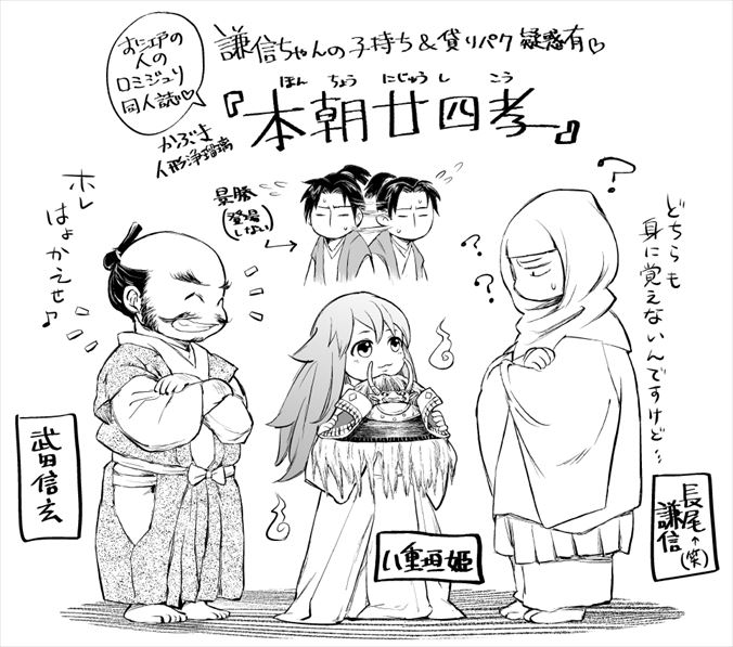 軍記物とかもそうですが、謙信に限らず戦国武将を使ってカジュアルにナマモノ同人ぶちかますことに定評がある江戸の人。(しかもそれが『歴史』として伝わっちゃったりする)
